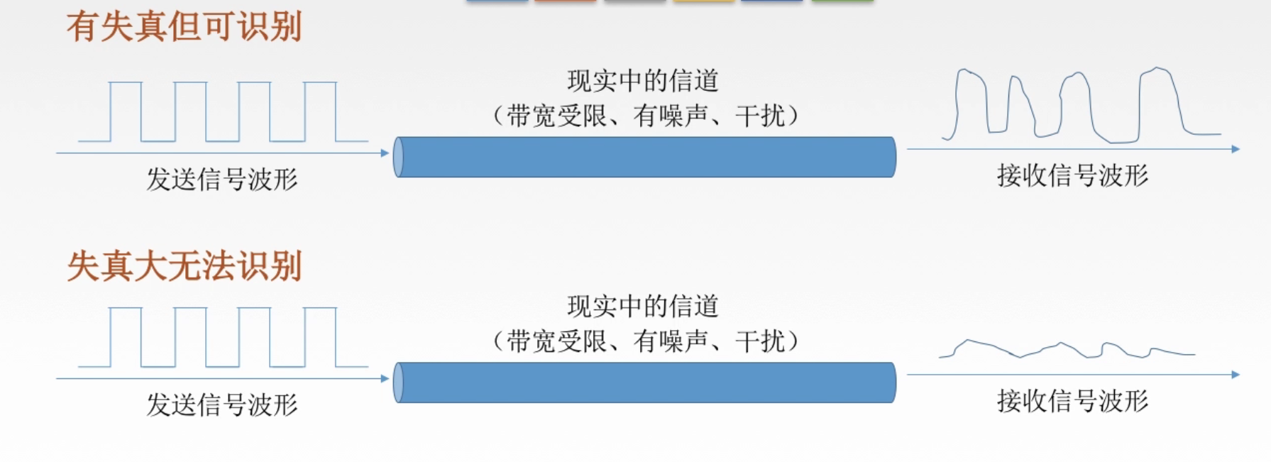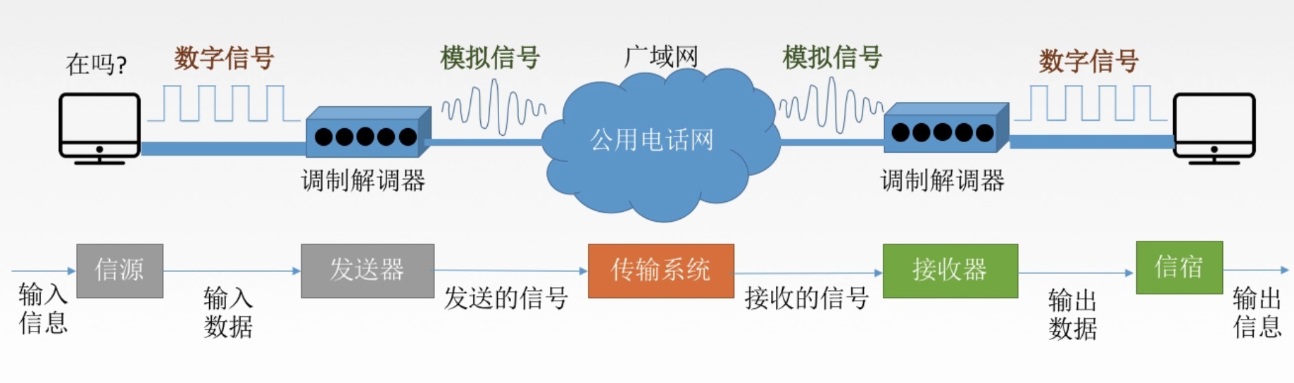 信号:数据的电气、电磁表现,数据在传输过程中的存在形式: