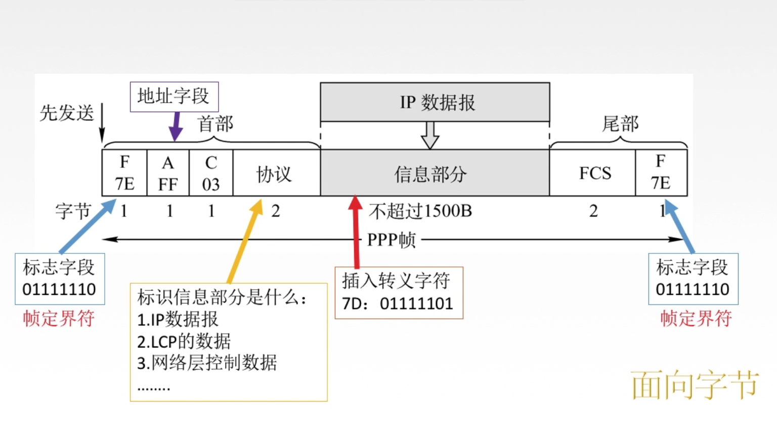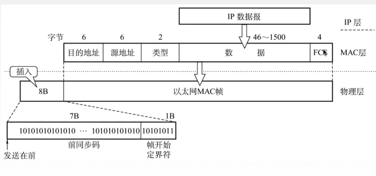 - 数据链路层:主要任务把网络层传下来的数据包封装成帧: