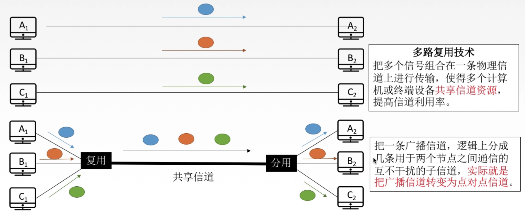 - 广播式网络:共享公共通信信道